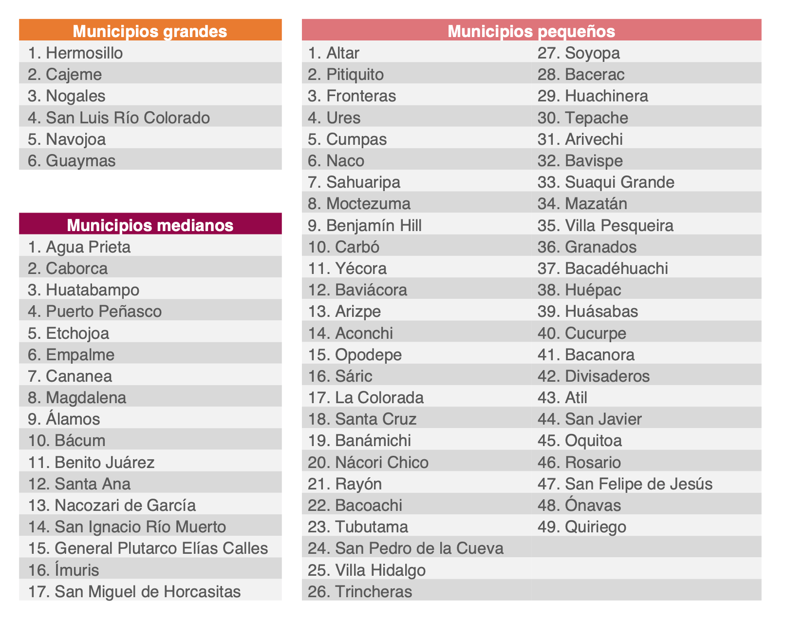 A lo largo del análisis hemos mencionado cómo ciertas variables difieren entre municipios grandes, medianos y pequeños. Vale la pena recapitular esos contrastes regionales, pues Sonora no es un bloque homogéneo –las realidades urbanas pueden ser distintas a las rurales, y las percepciones también.